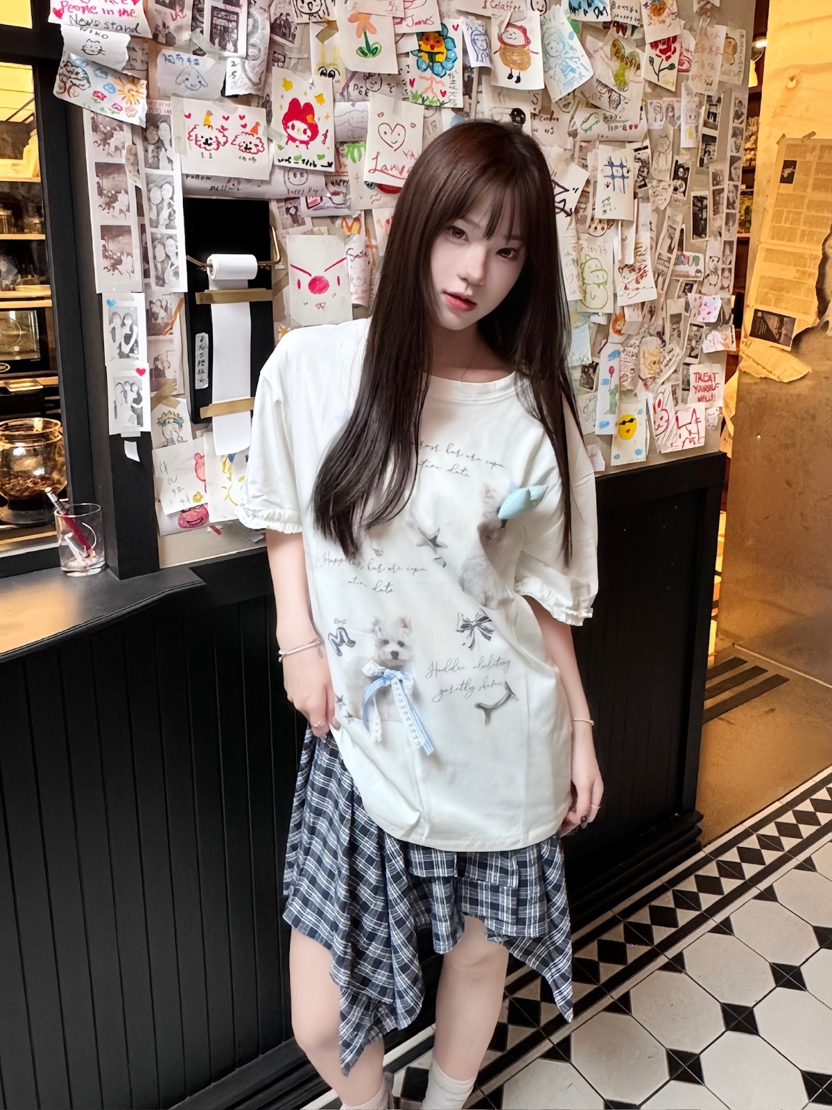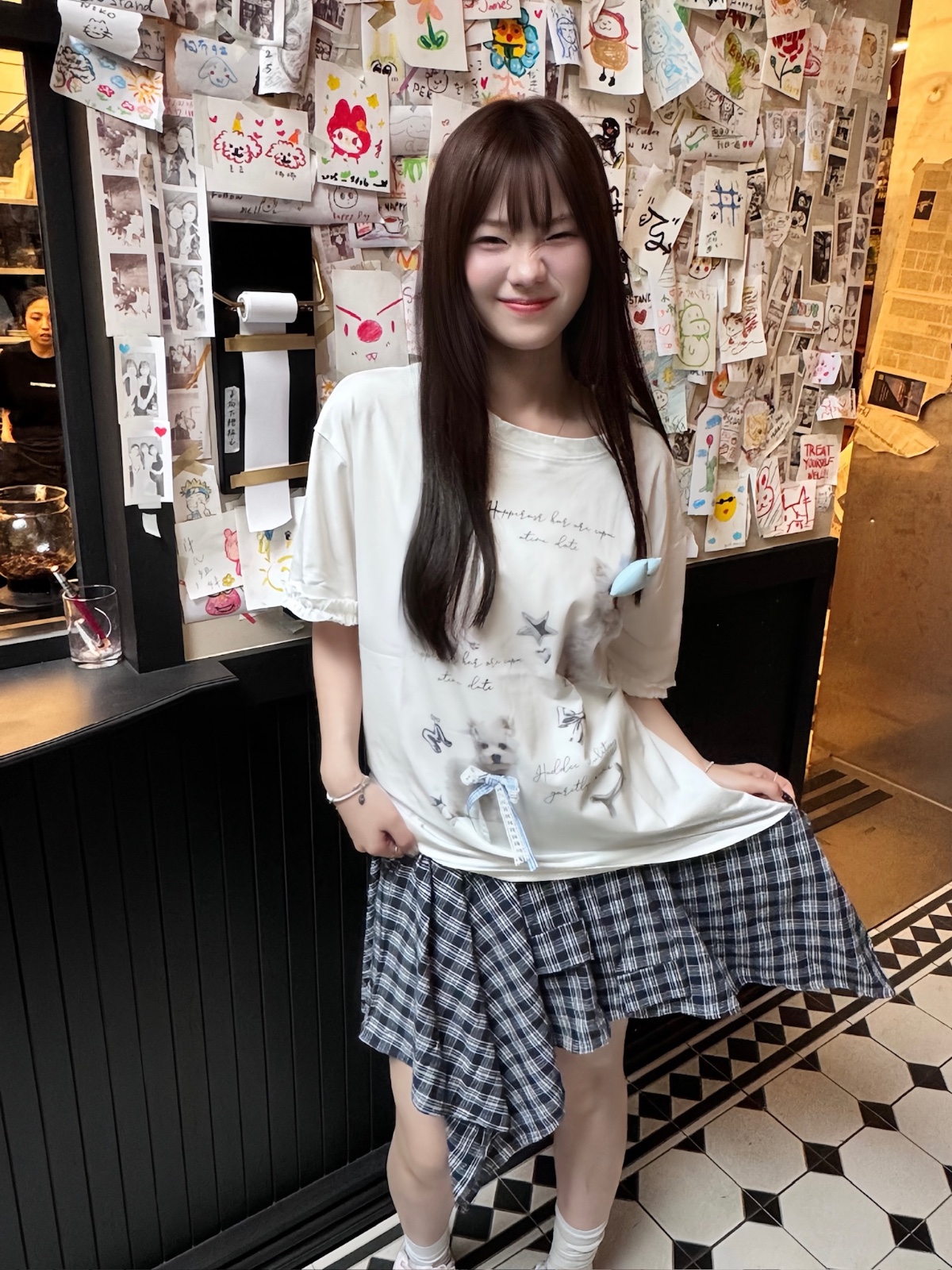 格子不規則設計感假兩件綁帶褲裙(2colors)