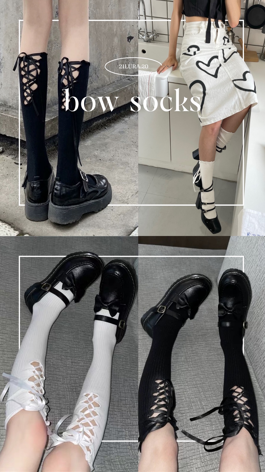 #Z1023 網紗緞帶蝴蝶結長襪(2colors)
