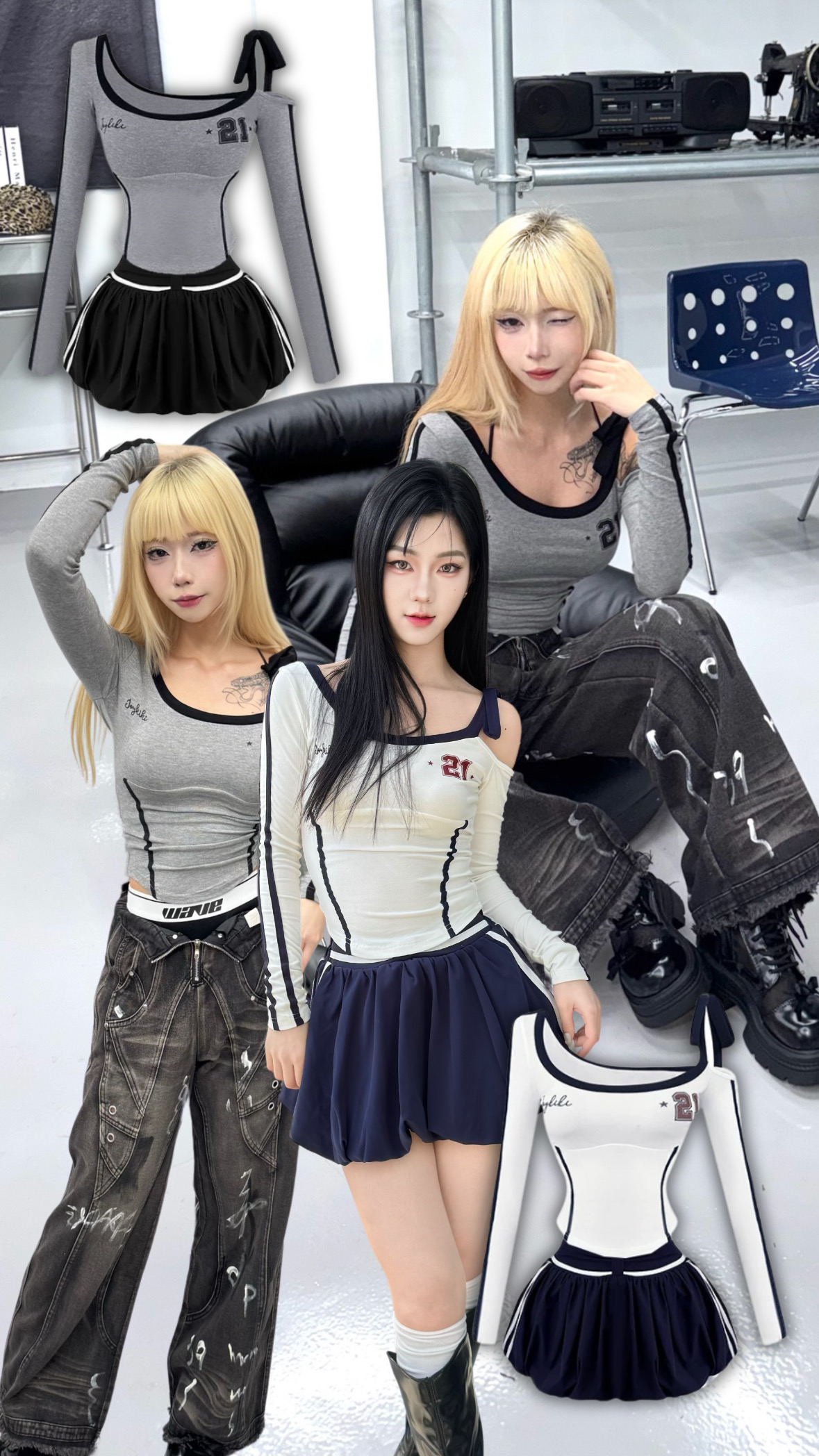 #TS1003斜肩上衣&包臀褲裙(附皮帶)