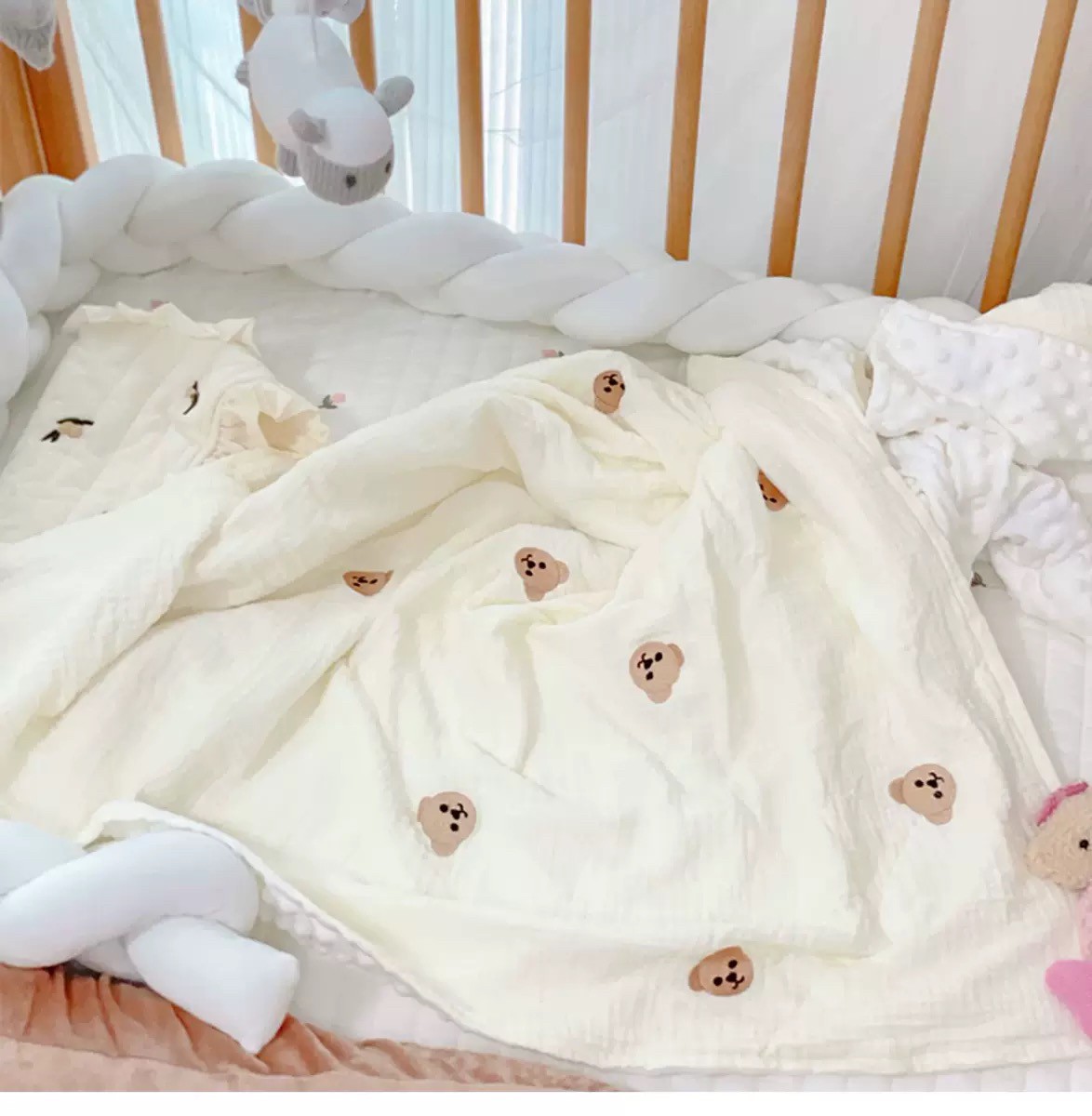紗布刺繡小熊+豆豆絨